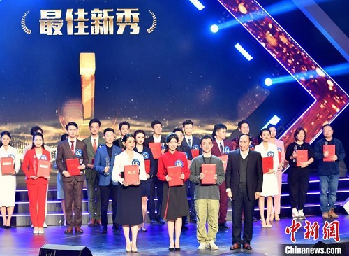 圖為兩岸主持新秀云連線展示才藝?!蚊鳌z 中新網平潭12月26日電 (記者 林春茵)聲耀平潭·第十三屆海峽兩岸電視主持新秀會25日晚間在福建省平潭綜合實驗區落幕。臺北市立大學學生...