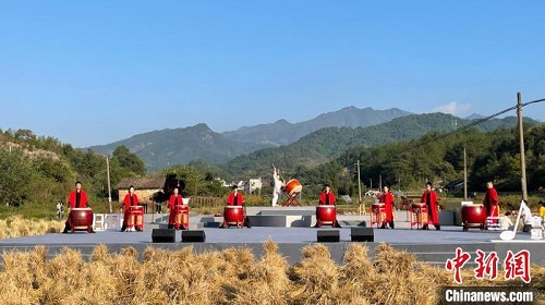 30日,歸田園——2021衢臺稻田音樂思饗會在衢州市衢江區黃壇口鄉黃壇口村舉辦,兩岸同胞齊聚一堂,用舞蹈演繹江南鄉村田間勞作場景,也用銅管吹奏傳遍臺灣大街小巷的民謠。
