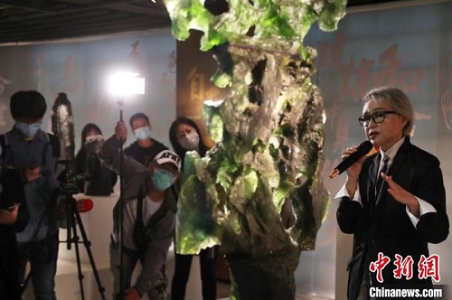 楊惠姍導覽張毅創作的琉璃作品“太湖石”系列 張亨偉 攝