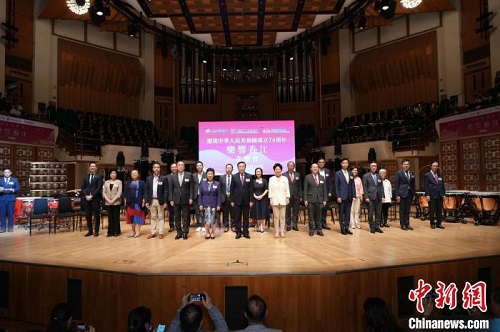 中新網香港9月26日電 為慶祝新中國成立74周年,香港九龍社團聯會、香港中國企業協會合辦,油尖旺民政事務處贊助的“慶祝中華人民共和國成立74周年·樂響香江音樂會”25日晚在香港文化中心舉行。