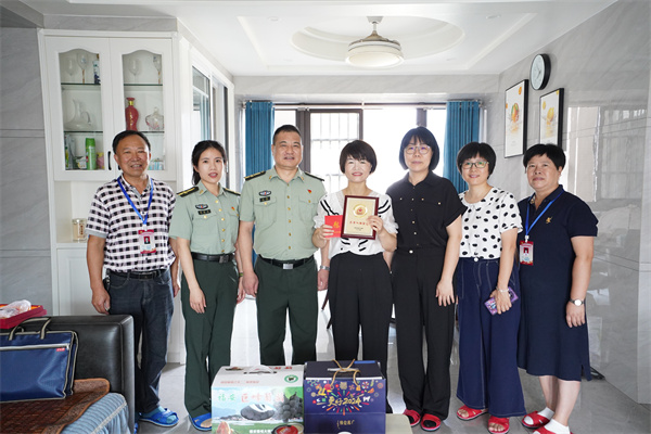 當天上午,工作人員分別深入天茂城市廣場、金谷湖畔嘉園、海德公園等小區,走訪慰問新兵家屬,送去參軍入伍紀念牌和慰問品、慰問金,向軍人及家屬致以誠摯的問候和節日的祝福,送去黨和政府的關懷與溫暖,同時,感謝軍屬們一直以來對軍人、對部隊、對國防建設的大力支持和默默付出,感謝他們為國家和軍隊培養優秀軍人。