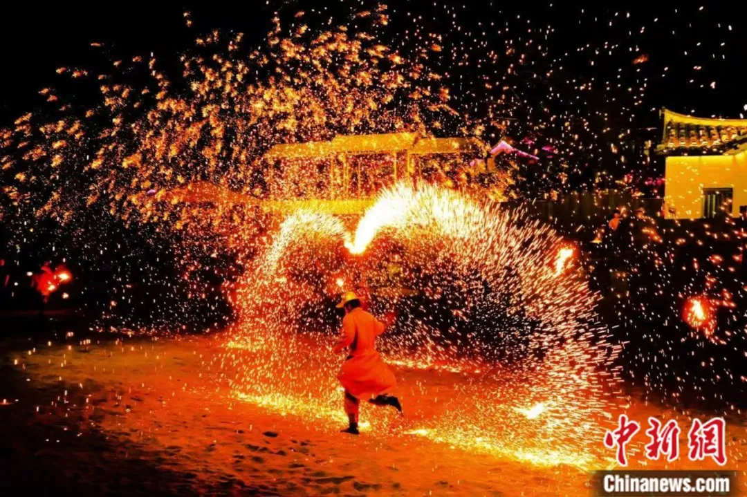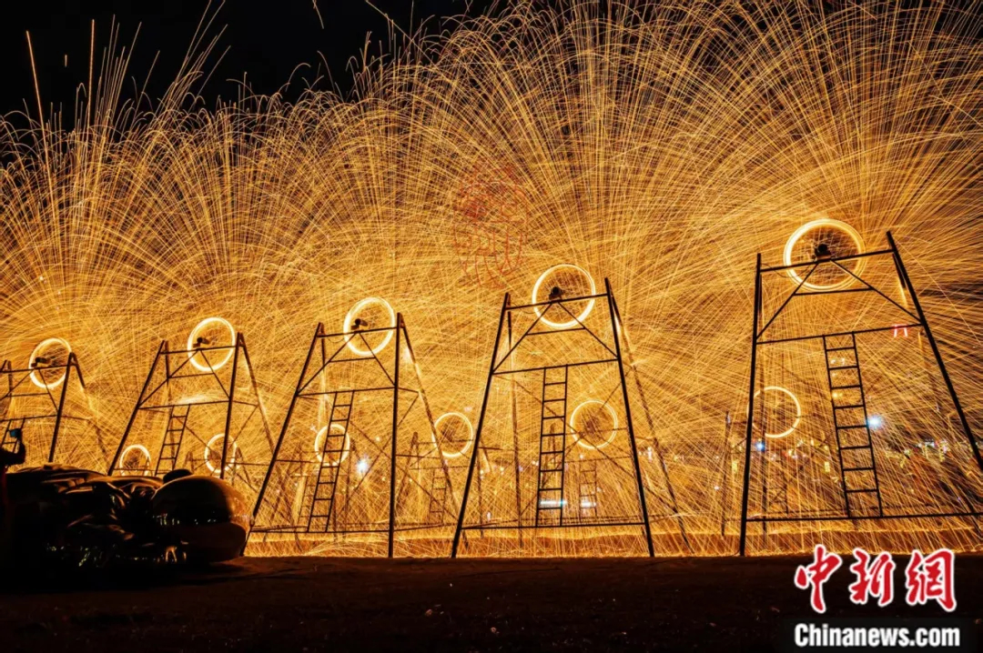當天晚上,在靈鎮宮廣場舉行沖花表演